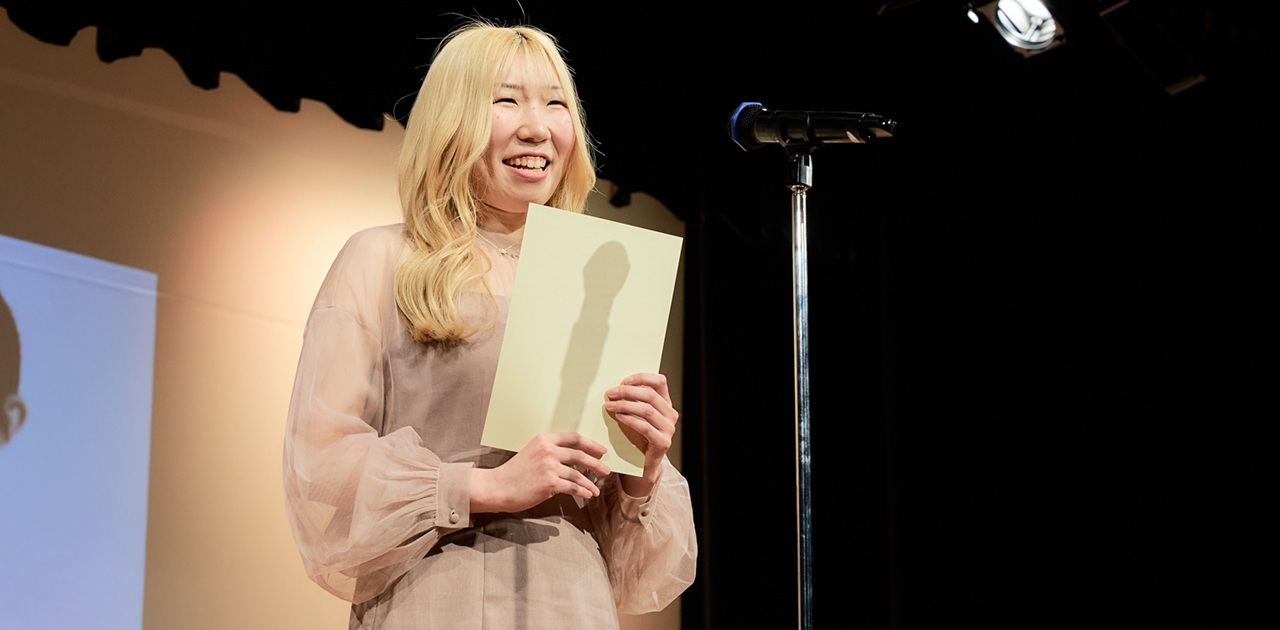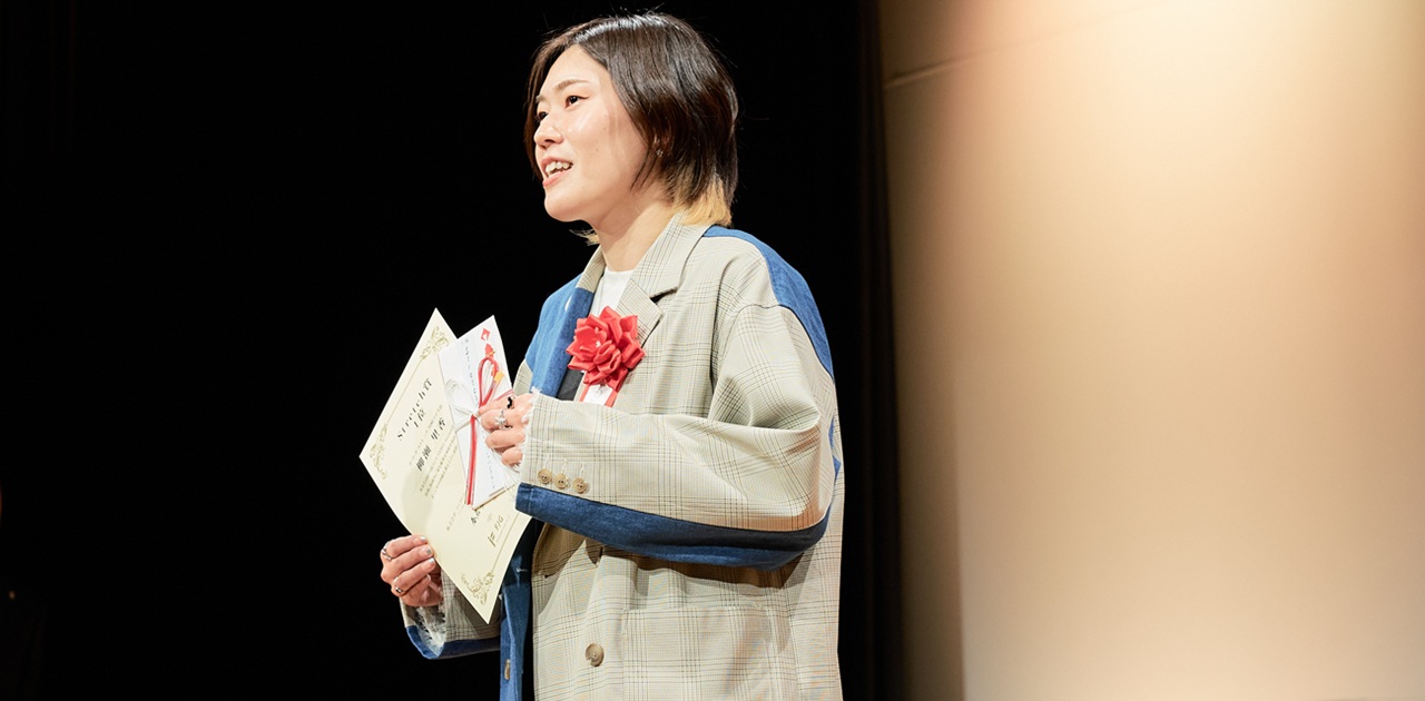 3回1位を取り、殿堂入りするということは本当に大変なことで、正直、とてもプレッシャーがありました。ですが、一つだけ言えることは、諦めないでやってこれたことは自分の中で誇りに思えるということです。殿堂入りさせていただいたので来年からは出られませんが、また新たな目標を見つけて精一杯頑張っていきたいと思います。本日はありがとうございました。」