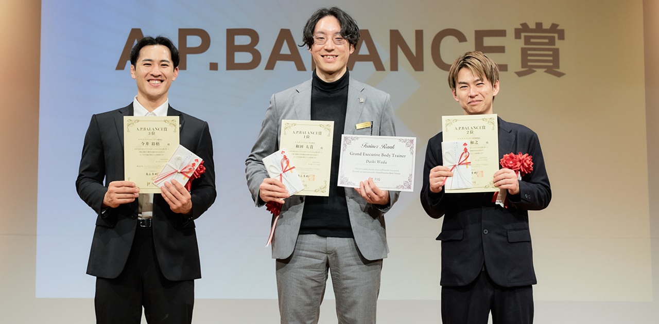 A.P.BALANCE賞 1位 和田 大貴 カラダファクトリー名古屋店 ※3連覇殿堂入り 「グランドエグゼクティブボディトレーナー」認定